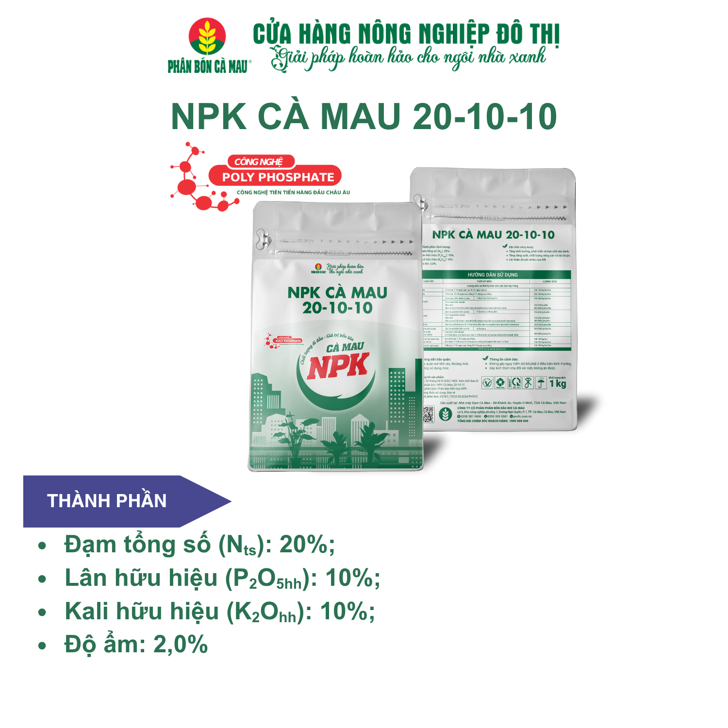 – Thành phần: Đạm tổng số (Nts): 20%; Lân hữu hiệu (P2O5hh):10%; Kali hữu hiệu (K2Ohh): 10%; Độ ẩm: 2,0 %