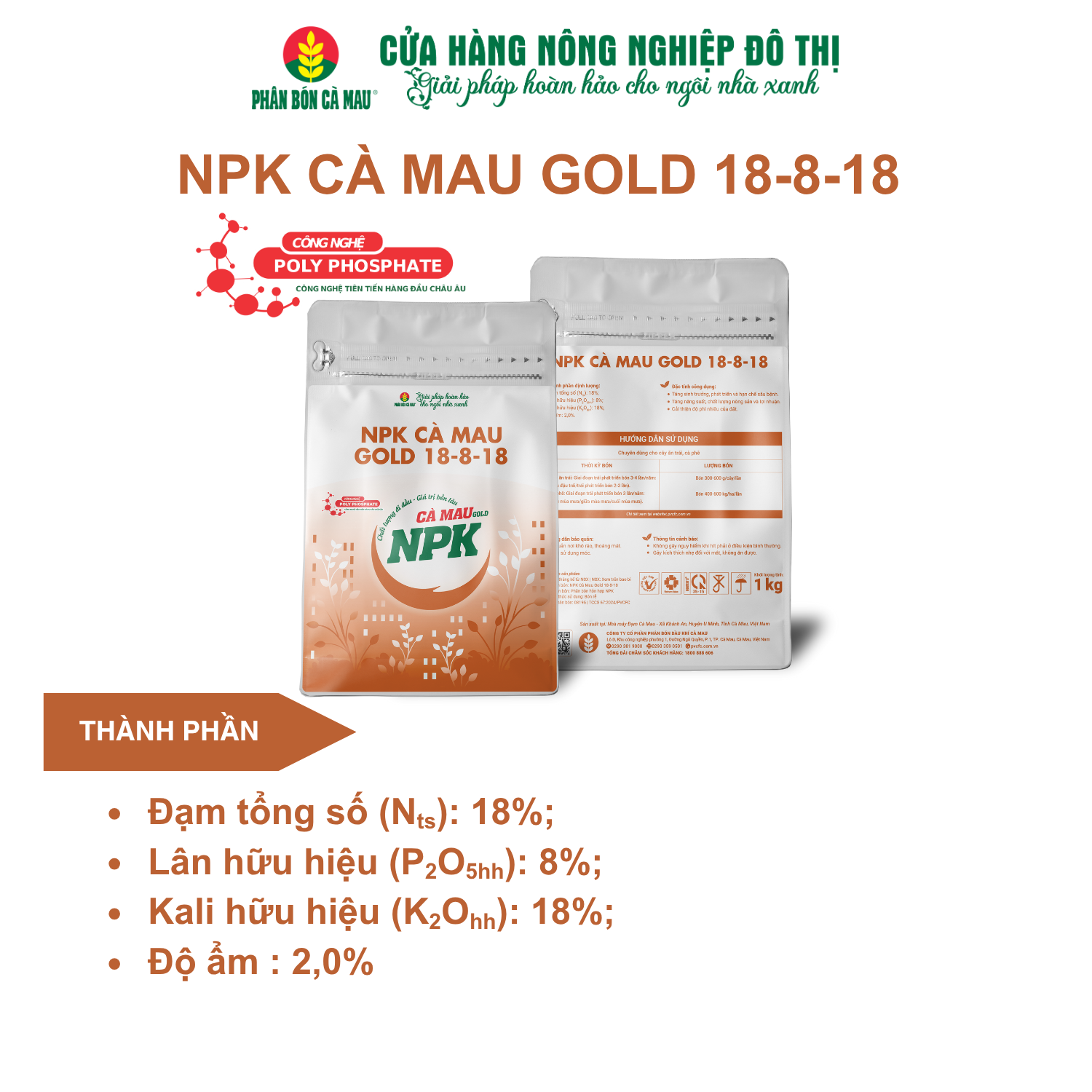 Phân bón NPK Cà Mau Gold 18-8-18 -Chuyên dụng cho cây ăn quả, kiểng chậu