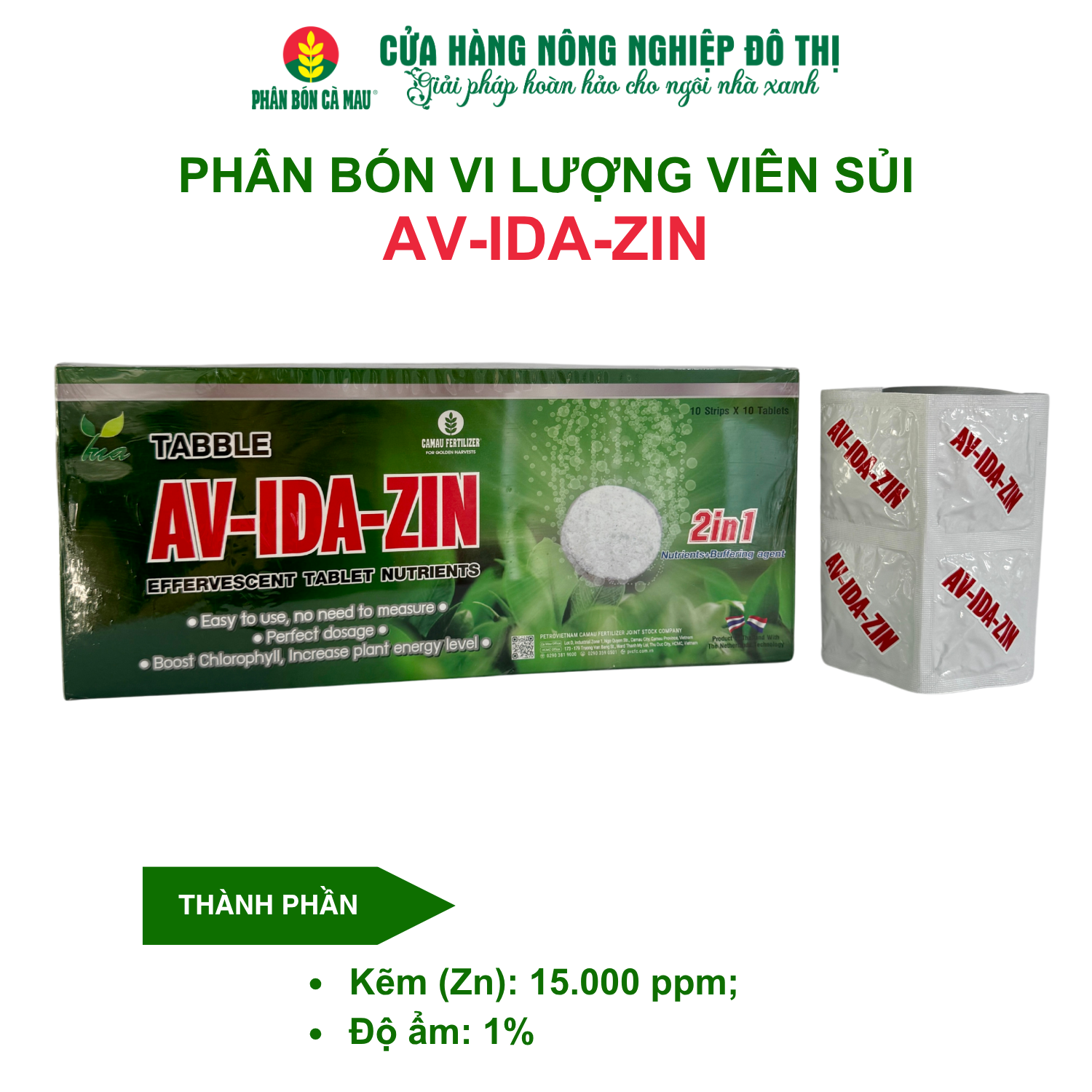 Phân bón vi lượng viên sủi AV-IDA-ZIN- Đa dụng, thích hợp nhiều giai đoạn sinh trưởng