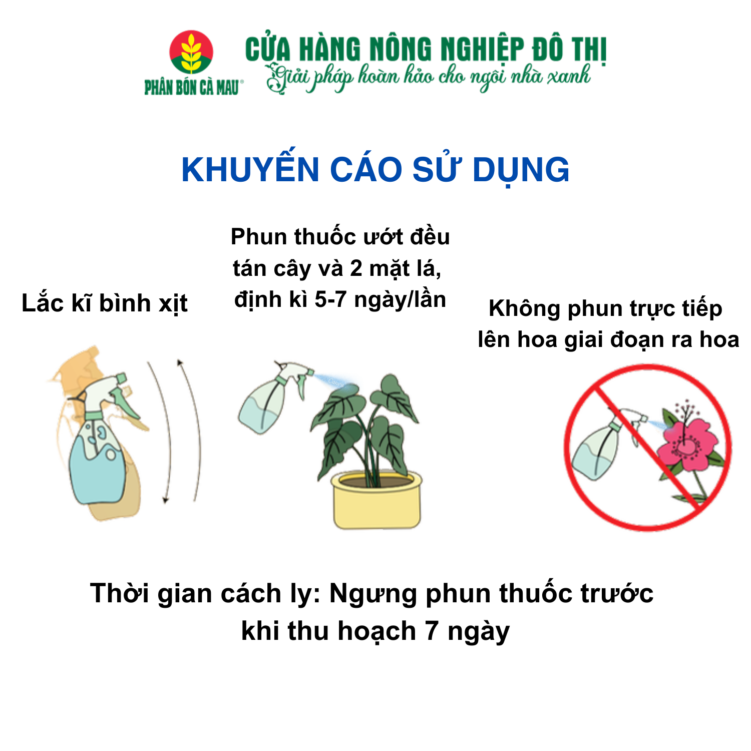– Thời gian cách ly: Ngưng phun thuốc trước khi thu hoạch 2 ngày